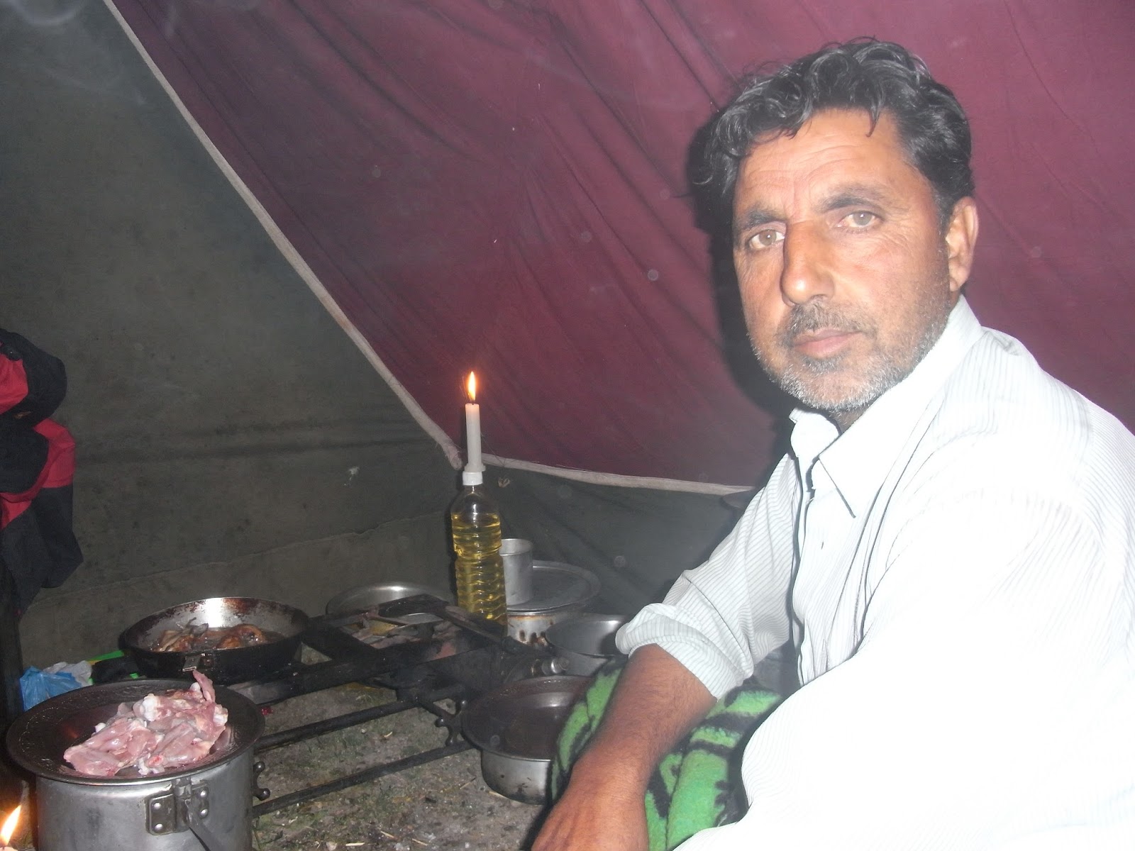 Etwas unterhalb war ein weiterer Gebirgssee sichtbar. Wir waren von einer gewaltigen Bergkulisse eingerahmt. Wir legten eine kurze Rast ein und nahmen ein kleines Mahl zu uns: gekochtes Gemüse und Kartoffeln, Eier, Toast und Marmelade.