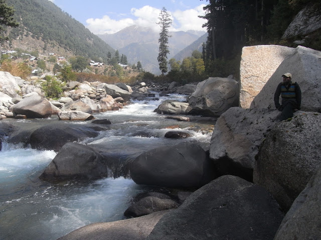 waren wir aufgestiegen. Hinter dem eisigen Gewässer ragte der majestätische Haramukh(5142 Meter) auf. Er gilt den Hindus als Wohnsitz Shivas. Auch der Tempel im Tal ist ihm gewidmet.
